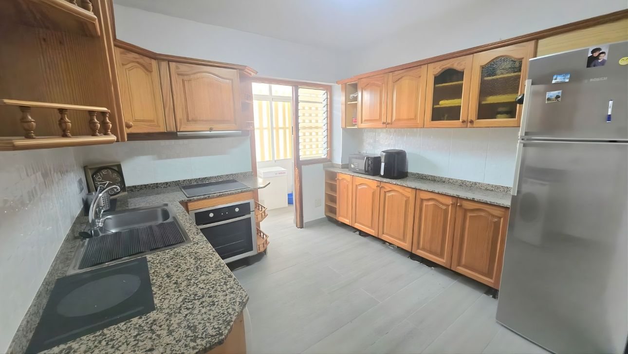 La gran cocina totalmente equipada cuenta con una lavandería.